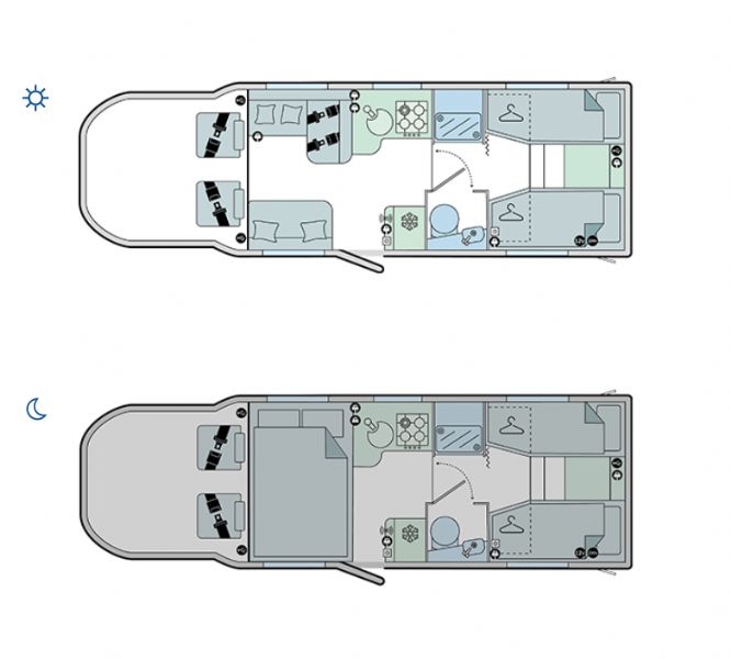 - Rear fixed single beds