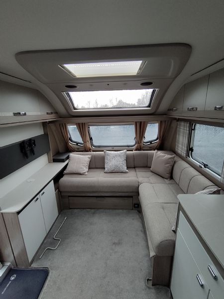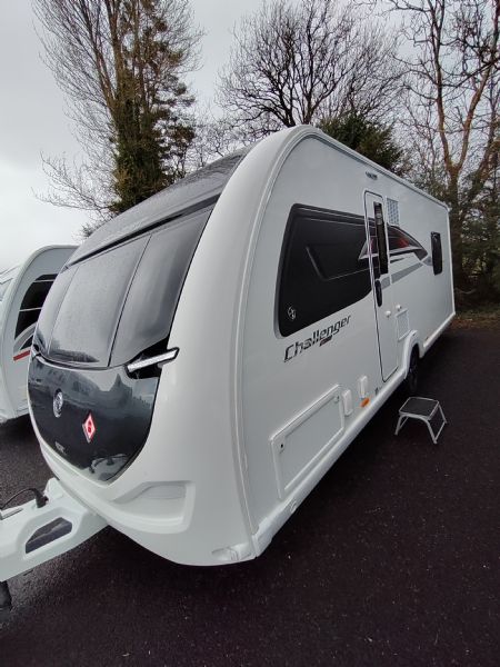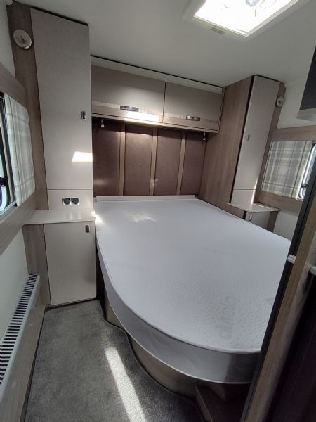 The Swift Challenger Grande 560L is one of the most popular 4-berth layouts on the UK market, thanks to its 8ft-wide body and clever separation of living, sleeping, and washroom areas.