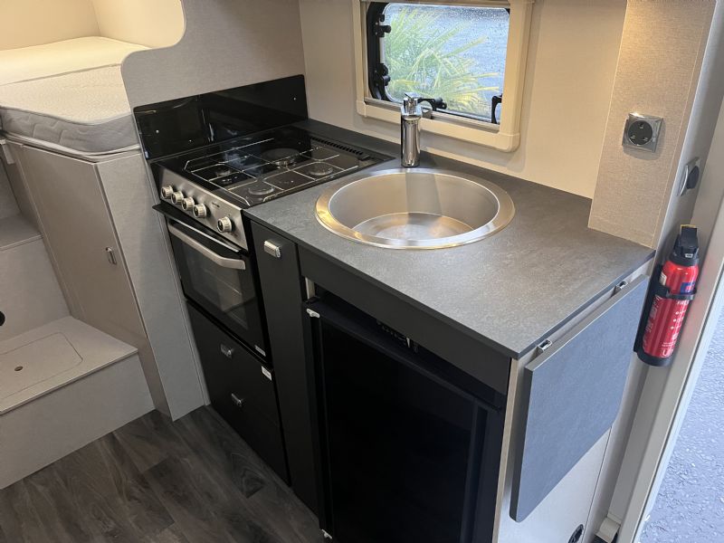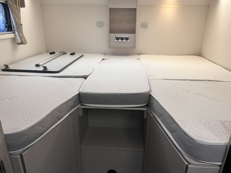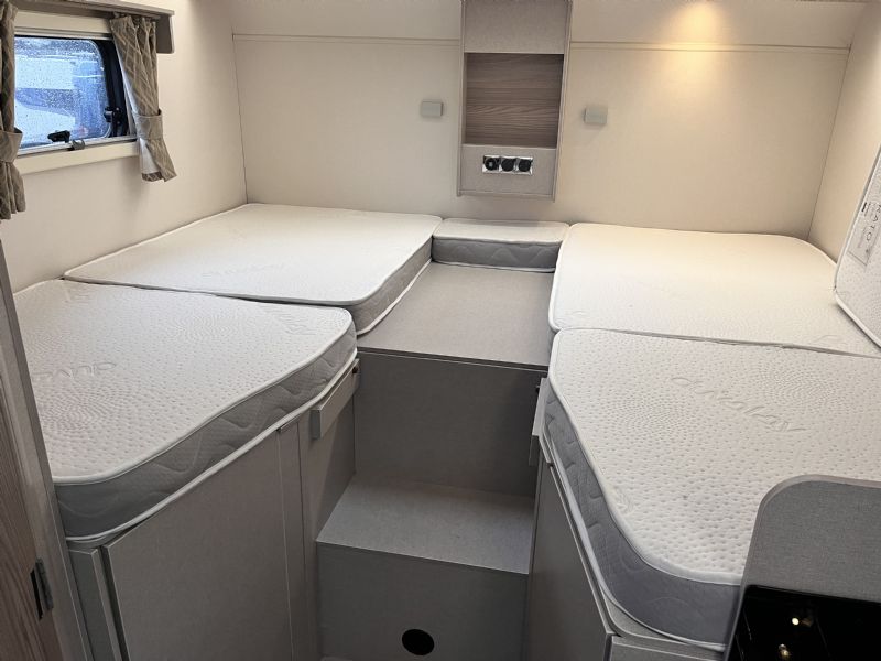 - Fixed rear single beds that also make into double